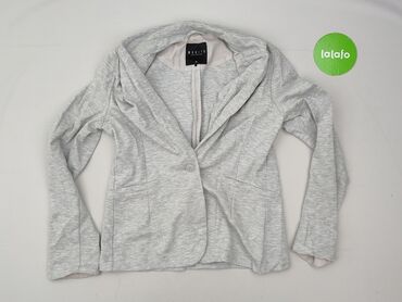 Marynarka damska MOHITO Collection - Rozmiar: 36 (z metki) - Krój: jednorzędowy, zapinany na jeden guzik - Kolor i wzór: jasnoszary w kratę z różowymi i białymi liniami - Materiał wierzchni: tkani...