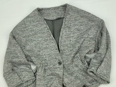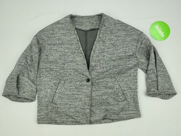 Szary żakiet damski South - Klasyczny krój z klapami i zapięciem na jeden guzik. - Miękka, dzianinowa tkanina w jasnoszarym melanżu – wygodna, lekko elastyczna. - Dwie przednie kieszenie z lamówką...Stan: