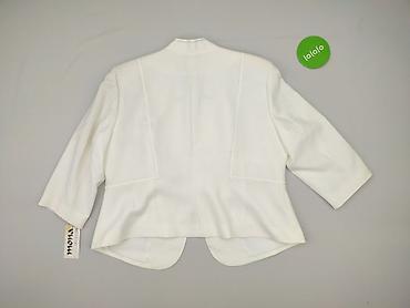 Biała damska marynarka Taboo - Rozmiar z metki: 44 - Skład: 55% len, 45% wiskoza - Krój: pudełkowy/luźny, lekko skrócony - Zapięcie: na 2 białe guziki (dodatkowy guzik zapasowy dołączony na metce ...