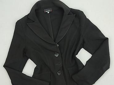 Damska marynarka MONAGA - Kolor: czarny - Rozmiar z metki: 34 - Krój: taliowany, podkreślający sylwetkę - Zapięcie: dwa duże guziki z logo MONAGA z przodu - Kołnierz: szerokie, zaokrąglone klapy -...