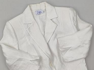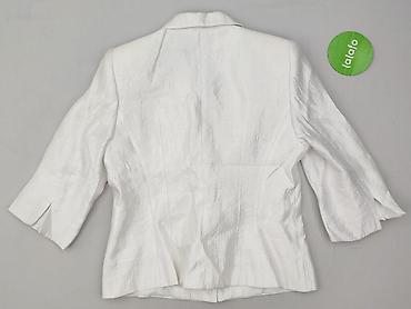 Damska marynarka w kolorze białym/ecru - Krój: taliowany, jednorzędowy - Zapięcie: 2 guziki z przodu - Kołnierz: klasyczne, ostre klapy - Kieszenie: trzy z przodu (dwie dolne poziome, jedna piersi...Stan: