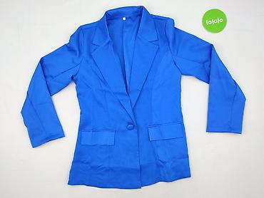 Żakiet damski w kolorze kobaltowym - Fason: jednorzędowy, zapinany na jeden guzik - Kołnierz: z klapami - Rękawy: długie - Kieszenie: dwie naszywane z przodu - Materiał (z metki, część wierzchnia)...