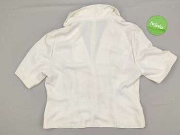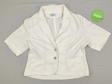 Żakiet damski BOGMAR - Kolor: biały - Krój: krótki żakiet z krótkim rękawem, taliowany - Zapięcie: jeden guzik z przodu - Kołnierz: szerokie klapy z dekoracyjnymi przeszyciami - Kieszenie: 2 listw...