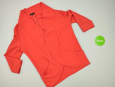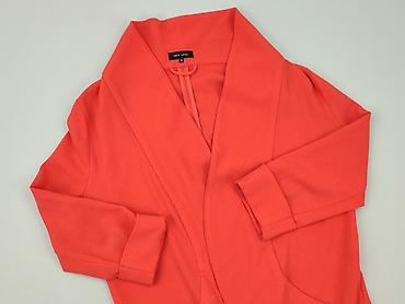 - Fason: bez zapięcia, lejące poły z zaokrąglonymi wykończeniami, rękawy 3/4 z mankietem, szeroki kołnierz/szalowy dekolt