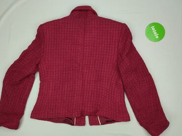 Żakiet damski, czerwony, asymetryczny - Fason: krótki żakiet z asymetrycznym przodem (zapinanie na zakładkę bez widocznych guzików) - Kolor: intensywna czerwień - Materiał: 100% poliester, faktura...