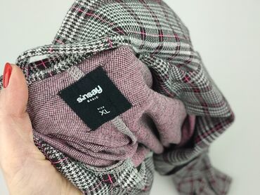 Elegancka damska marynarka o wzorze w kratę, idealna do wielu stylizacji. Wykonana z mieszanki poliestru, wiskozy i lycry, co zapewnia komfort noszenia i dopasowanie. Wzór w kratę w odcieniach brąz...Stan: