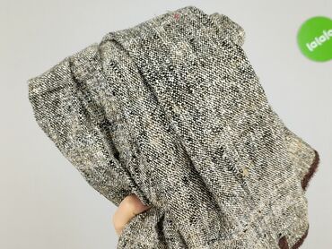 - Tkanina: grubszy, melanżowy tweed w odcieniach beżu, szarości i czerni; widoczna faktura przędzy