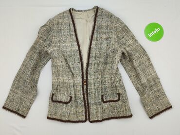 Marynarka damska Collection, Made in Italy - Krój: taliowany, z klapami, zapinana na 2 guziki - Wzór: subtelna krata/prążek w odcieniach szarości z beżowymi nitkami - Rękawy: długie - Tył: rozcięc...