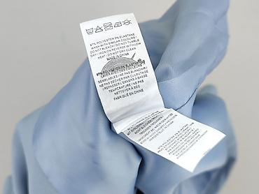 - Metki pielęgnacyjne: pranie w 30°C z podobnymi kolorami; nie wybielać; nie suszyć w suszarce; prasować na lewej stronie w niskiej temperaturze; nie czyścić chemicznie