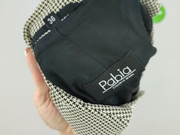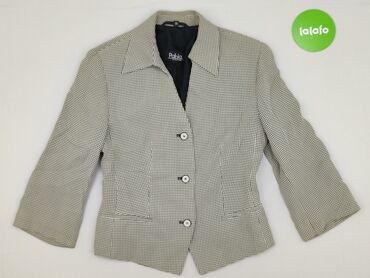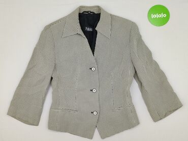 Elegancki, ponadczasowy żakiet w pepitkę, idealny do stylizacji biurowych i smart casual. Dzięki podkreślonej talii ładnie modeluje sylwetkę, a rękaw 3/4 dodaje lekkości. Marka: Pabia. Rozmiar z metki: 36.