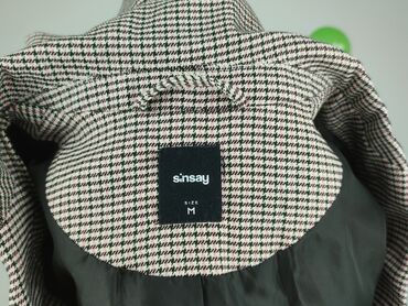 Damska marynarka Sinsay, rozmiar XS. - Krój: dłuższa marynarka o prostym fasonie, z klasycznymi klapami - Wzór: czarno‑biała pepitka - Zapięcie: bez zapięcia (otwarty front) - Kieszenie: dwie nasz...
