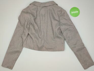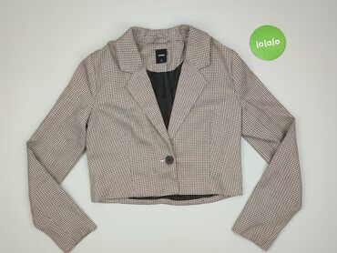 Krótki żakiet damski Sinsay - Rozmiar: XS (na metce) - Krój: cropped, dopasowany, z klasycznymi klapami - Zapięcie: jeden guzik z przodu - Wzór: drobna krata (odcienie beżu, czerni i delikatnego r...
