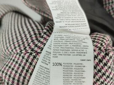 Marynarka damska Sinsay - Rozmiar: XS (z metki) - Krój: krótka, lekko taliowana, dwurzędowa - Wzór: klasyczna krata (czarno-biała z delikatnymi, jasnoróżowymi akcentami) - Kołnierz: z klapami - Za...