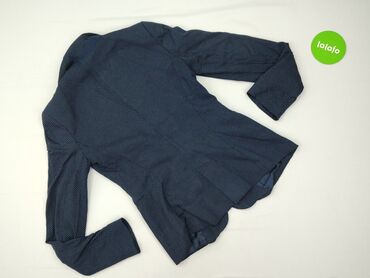 Marynarka damska Zara Basic - Kolor: niebieski melanż, delikatny wzór jodełki - Fason: taliowany, jednorzędowy - Zapięcie: 2 metaliczne guziki z przodu, po dwa guziki na mankietach - Kołnierz: kla...