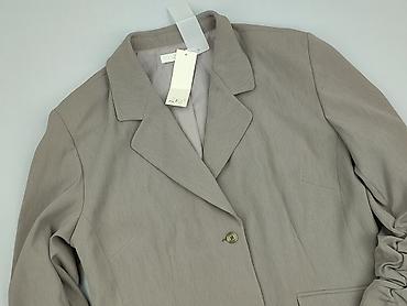 Damska marynarka kardigan w paski - Krój: luźny, bez podszewki, jednorzędowe zapięcie na 1 guzik - Kołnierz: szeroki, szalowy - Rękaw: 3/4 - Wzór: pionowe, cienkie prążki - Kolor: beżowy z ciemnie...