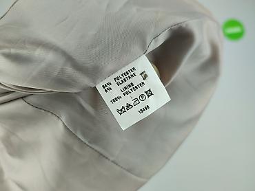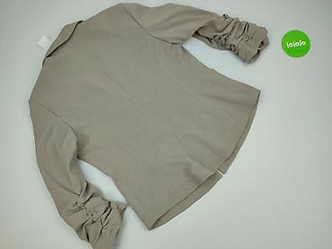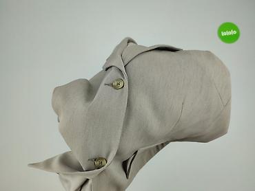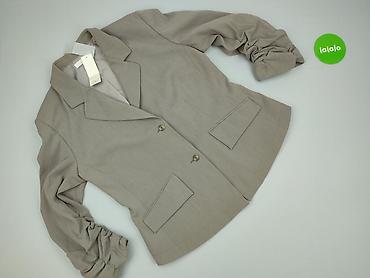 Damska marynarka kardigan w paski - Krój: luźny, bez podszewki, jednorzędowe zapięcie na 1 guzik - Kołnierz: szeroki, szalowy - Rękaw: 3/4 - Wzór: pionowe, cienkie prążki - Kolor: beżowy z ciemnie...Stan: