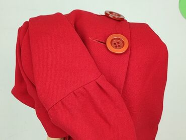 Żakiet damski, czerwony, asymetryczny - Fason: krótki żakiet z asymetrycznym przodem (zapinanie na zakładkę bez widocznych guzików) - Kolor: intensywna czerwień - Materiał: 100% poliester, faktura...