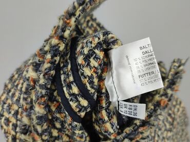 Marynarka damska C•M•D, rozmiar 12 - Klasyczny żakiet z tkaniny boucle/tweed w wielokolorową kratę (odcienie szarości z pastelowymi akcentami). - Taliowany fason z modelującymi przeszyciami, podkre...
