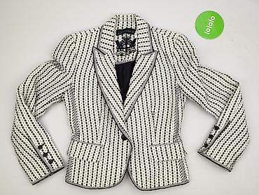 ZARA BASIC – damski żakiet dwurzędowy w wyrazisty wzór - Model: dwurzędowy żakiet z klapami - Marka: ZARA BASIC - Rozmiar z metki: S (EUR/USA/MEX) - Kolorystyka: czarno-biała, geometryczny print w...