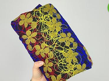 - Kolorystyka i wzór: czarne tło z wielobarwnym, ekspresyjnym haftem/nadrukiem w odcieniach żółci, czerwieni i kobaltu; motyw kwiatów połączonych nieregularnymi liniami