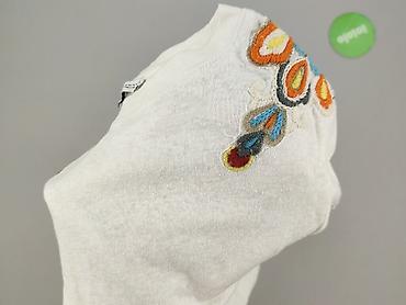 Delikatna, codzienna bluzka z dekoracyjnym haftem, świetna do dżinsów i spódnic, wygodna dzięki elastycznej, przyjemnej w dotyku tkaninie. Dla kobiety. Używana.