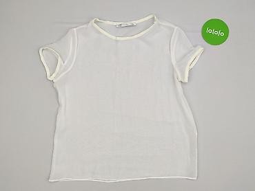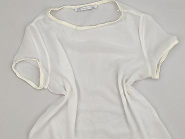 ZARA – damska bluzka/t-shirt - Kolor: biały (lekko półtransparentny, delikatna przędza) - Fason: luźny, z dekoltem w łódkę; krótkie rękawki z marszczeniem - Tył: dekoracyjne pionowe przeszycie i ł...