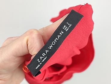 Bluzka damska ZARA TRF - Marka: ZARA Trafaluc - Rozmiar z metki: S (EUR S / USA S / MEX 26) - Kolor: intensywna czerwień - Krój: prosty, z krótkim rękawem, okrągły dekolt - Tył: oryginalne rozcięc...