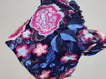 - Wzór: gęsty, kwiatowy haft 3D w odcieniach różu, fuksji, granatu i błękitu na ciemnym, półprzezroczystym tle