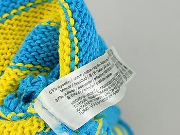 - Wzór i kolory: poziome pasy w turkusie i żółci