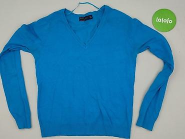 Lekki, gładki sweter idealny do codziennych stylizacji, dobrze układa się na sylwetce i łączy się zarówno z jeansami, jak i spódnicami. Dla kobiety. Używany.