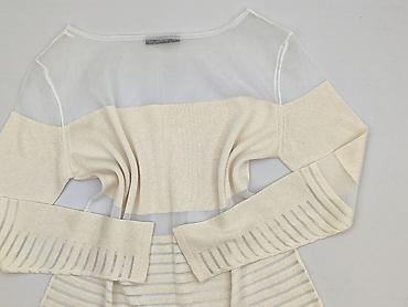 Sweter damski Zara Knit - Rozmiar: S (EUR/USA S, MEX 26) - Kolor: ecru/śmietankowy - Fason: klasyczny, z długim rękawem i okrągłym dekoltem - Detal: półprzezroczysta wstawka z siateczki na górnej ...
