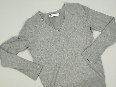 Sweter damski ZARA - Rozmiar na metce: S (EUR S / USA S / MEX 26) - Krój: klasyczny, proste rękawy, okrągły dekolt - Dzianina: grubsza, melanżowa przędza w odcieniach szarości z bielą; wyraźna fak...