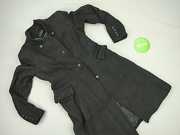 Płaszcz damski Zara Basic - Klasyczny, wełniany trencz w kolorze ciemnoszarym - Dwurzędowe zapięcie na guziki - Pasek w talii z szlufkami, podkreślający sylwetkę - Szeroki kołnierz; z tyłu dekorac...