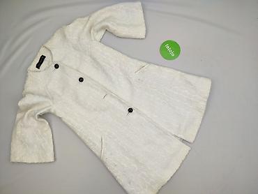 Damski płaszcz/żakiet wełniany w kolorze jasnego beżu (melanż). - Krój: prosty, inspirowany marynarką; kołnierz z klapami, zapięcie na 2 guziki z przodu - Rozmiar z metki: XS (EU XS / UK XS / CN 1...