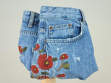 - Detale: kwiatowe hafty po bokach w kolorach czerwieni i zieleni; subtelne przetarcia w stylu distressed; surowo wykończony dół z postrzępioną krawędzią