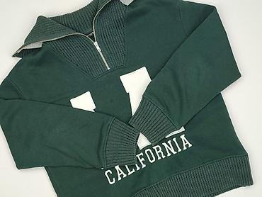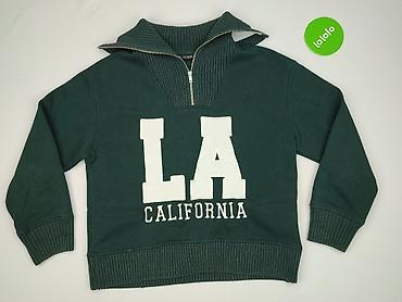 Bluza damska ZARA z wysokim, prążkowanym kołnierzem na zamek (half-zip). Model w kolorze butelkowej zieleni z dużym, białym nadrukiem/ aplikacją LA CALIFORNIA z przodu.