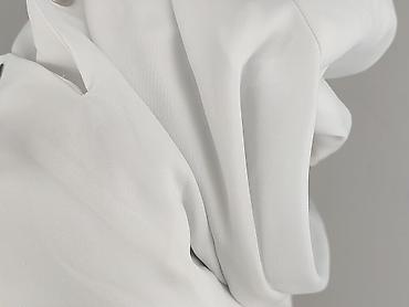 - Kolorystyka: biel z czarnymi kontrastami przy kołnierzu i rękawach