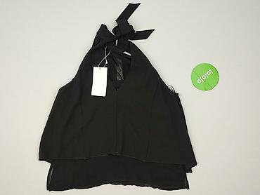 Top damski Zara, czarny, bez rękawów. - Fason: halter neck z wysoką stójką wiązaną/zapinana z tyłu; z przodu i z tyłu ozdobne wycięcie w kształcie łezki. - Materiał: gładki, lekko połyskujący (saty...