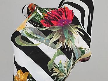 - Wzór: czarno-białe, pionowe pasy z dużym, kolorowym motywem kwiatowym z przodu i z tyłu
