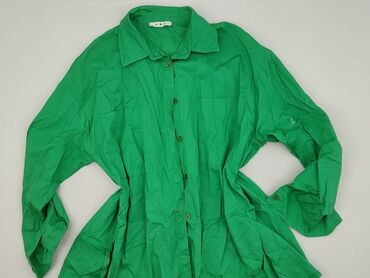 Koszula damska oversize w kolorze miętowym. - Fason: luźny, z obniżoną linią ramion i szerokimi, krótkimi rękawami; z kołnierzykiem. - Zapięcie: pełny rząd guzików z przodu. - Materiał: 65% polies...