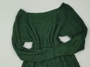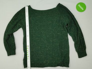 Ten damski sweter w kolorze zielonym wyróżnia się ozdobnym, dzierganym wzorem warkocza z przodu. Wykonany jest z przyjemnej w dotyku dzianiny z widocznymi, błyszczącymi włóknami, które dodają mu su...Stan: