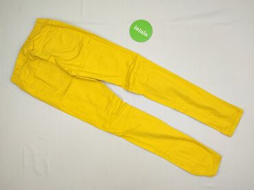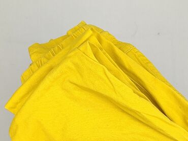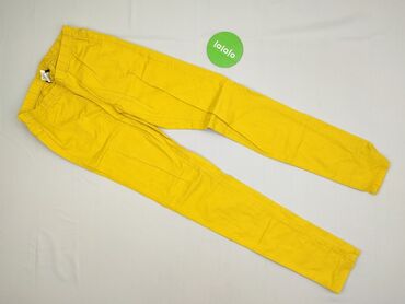 Żółte spodnie damskie z fakturowanej tkaniny - Krój: proste nogawki, wysoki stan - Pas: szeroka, marszczona guma z szlufkami na pasek - Zapięcie: brak (wciągane) - Kieszenie: dwie boczne - Materia...