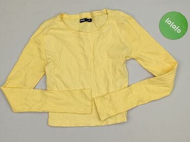 Długi rękawŻółty, prążkowany top z długimi rękawami marki Sinsay w rozmiarze S. Charakteryzuje się okrągłym dekoltem, co sprawia, że jest uniwersalny i pasuje do wielu stylizacji. Wykonany z prążkowanego materiału, który zapewnia elastyczność i dopasowanie do sylwetki. Idealny do noszenia na co dzień, może być bazą do wielu zestawów, zarówno casualowych, jak i bardziej eleganckich.