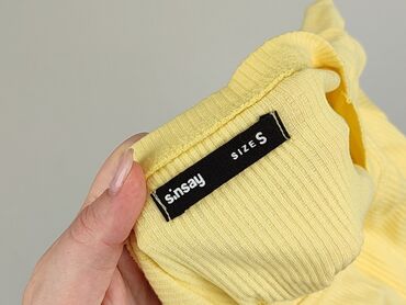 Bluzka damska Sinsay, rozmiar S. - Kolor: pastelowy żółty (limonkowy) - Krój: dopasowany, krótsza długość do talii - Dekolt: okrągły - Rękaw: krótki - Zapięcie: napy na przodzie - Materiał: prążko...