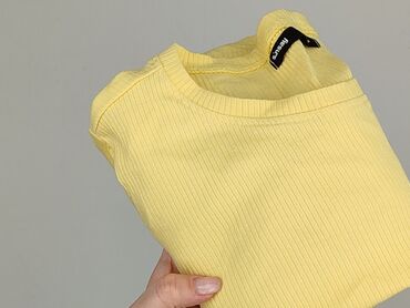 Bluzka Sinsay, rozmiar M - Krój: krótka, dopasowana koszulka z krótkim rękawem - Zapięcie: front na napy (metalowe zatrzaski) - Dekolt: okrągły - Kolor: pastelowy, jasnożółty - Materiał: prążkowan...