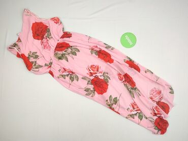 Sukienka damska maxi w kwiaty - Kolor: czarny z nadrukiem różowych róż i zielonych liści - Krój: zwiewna, rozkloszowana, długość do kostek - Dekolt: kopertowy w kształcie V - Rękawy: krótkie, luźne...