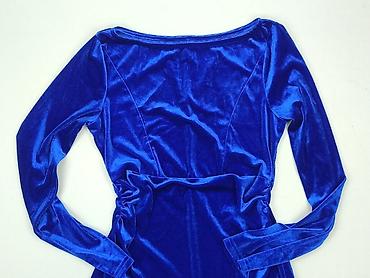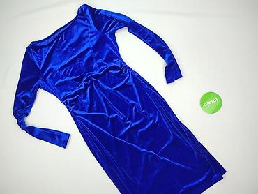 Sukienka damska, rozmiar S - Kolor: intensywny kobaltowy/niebieski - Fason: dopasowany, długość midi - Dekolt: szeroki, lekko łódkowy - Rękaw: 3/4 - Zapięcie: ozdobny metaliczny zamek na skos przez...