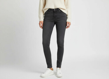 - Model: klasyczne dżinsy w odcieniu średniego niebieskiego z delikatnym przecieraniem