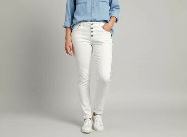 - Kieszenie: 5 kieszeni (dwie z przodu + mała kieszonka, dwie z tyłu)
