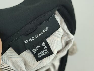 Czarna bluzka damska z długim rękawem, wykonana z poliestru, marki Atmosphere. Charakteryzuje się klasycznym kołnierzykiem i zapięciem na guziki. Kontrastowe wykończenie w żółtym i czarnym wzorze b...